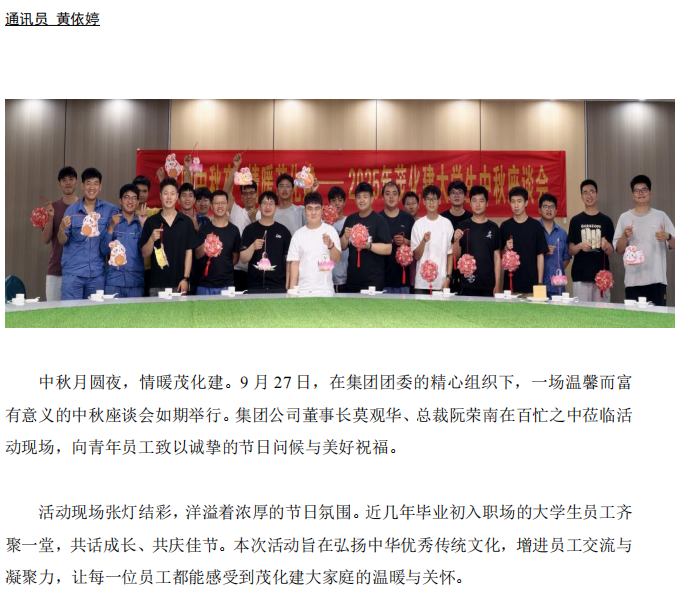 月圓中秋夜 情暖茂化建——2025 年集團(tuán)大學(xué)生中秋座談會(huì)圓滿舉行