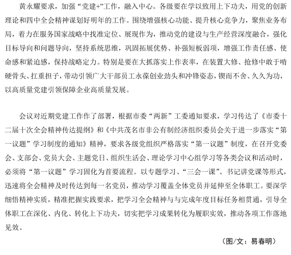 集團公司召開支部書記會議 學(xué)習(xí)貫徹黨二十屆四中全會精神宣講動員